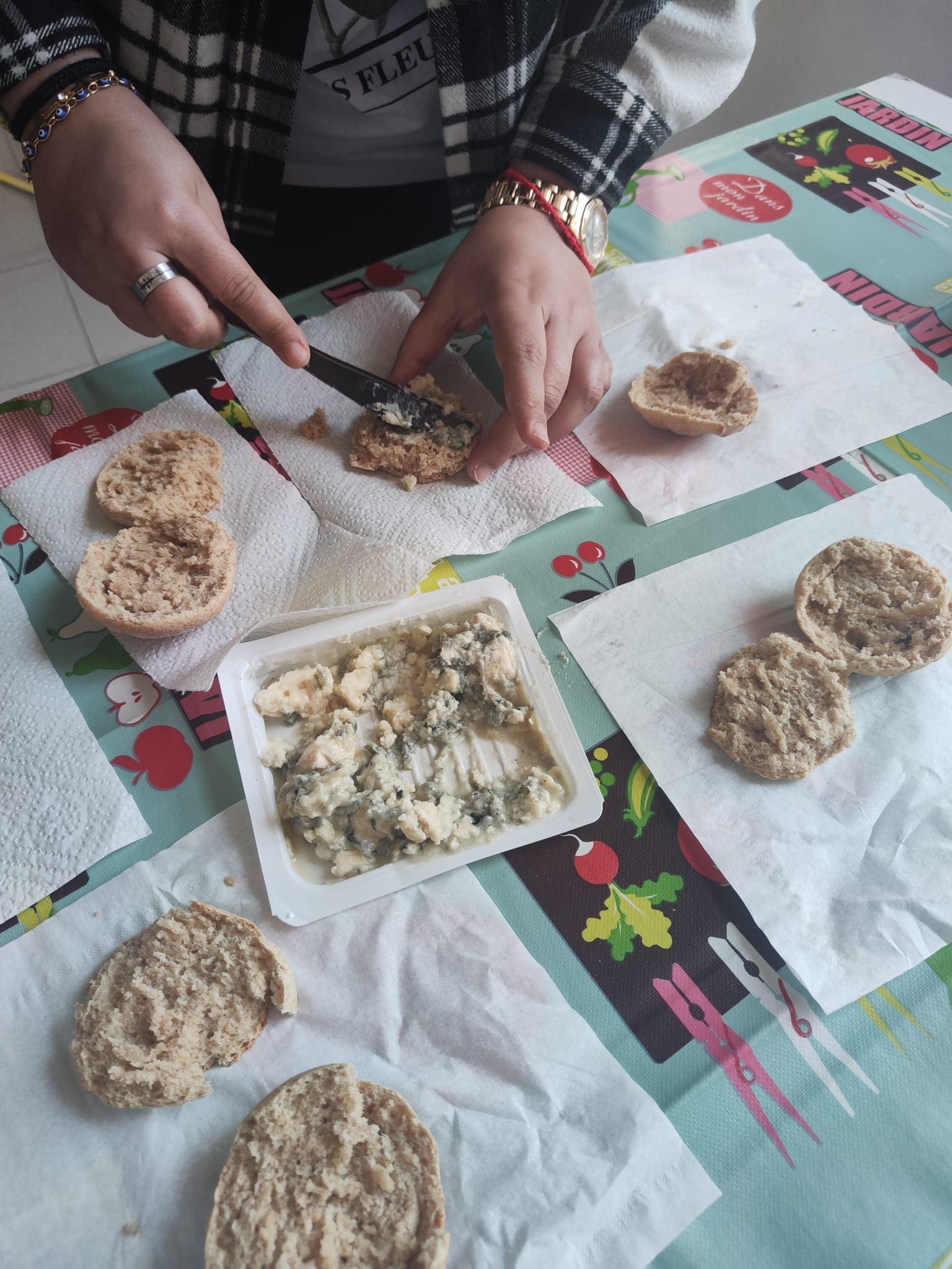 Concluímos la sesión haciendo unos bollitos de pan con harina integral de espelta ecológica rellenos de queso con Denominación de Origen Protegida "Bocaditos de Asturias" ¡¡¡Deliciosos!!!