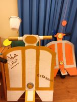 Un verdadero ejemplo de carnaval sostenible, desde el photocall simulando una máquina de vinilos, los propios vinilos con los cantantes favoritos de los usuarios e usuarias, las faldas, los pañuelos, las pelucas, las vespas...Sin duda un auténtico disfraz cien por cien reciclado, reutilizando distintos materiales.